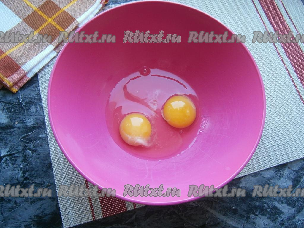 Яйца разбить в миску, всыпать щепотку соли.