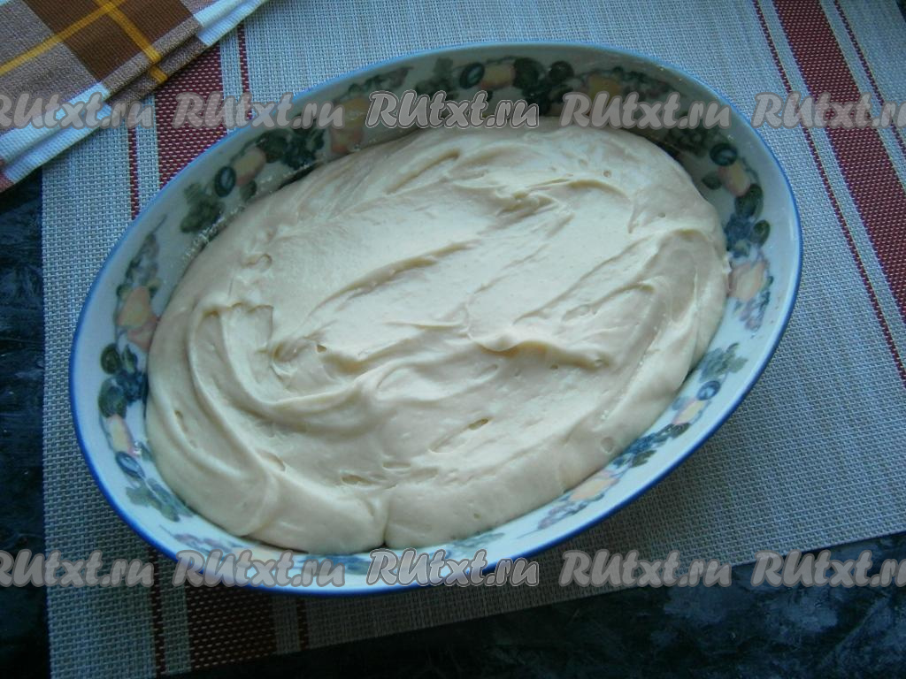 Замесить на низкой скорости миксера тесто, похожее на средней густоты сметану. Тесто должно медленно стекать с ложки.