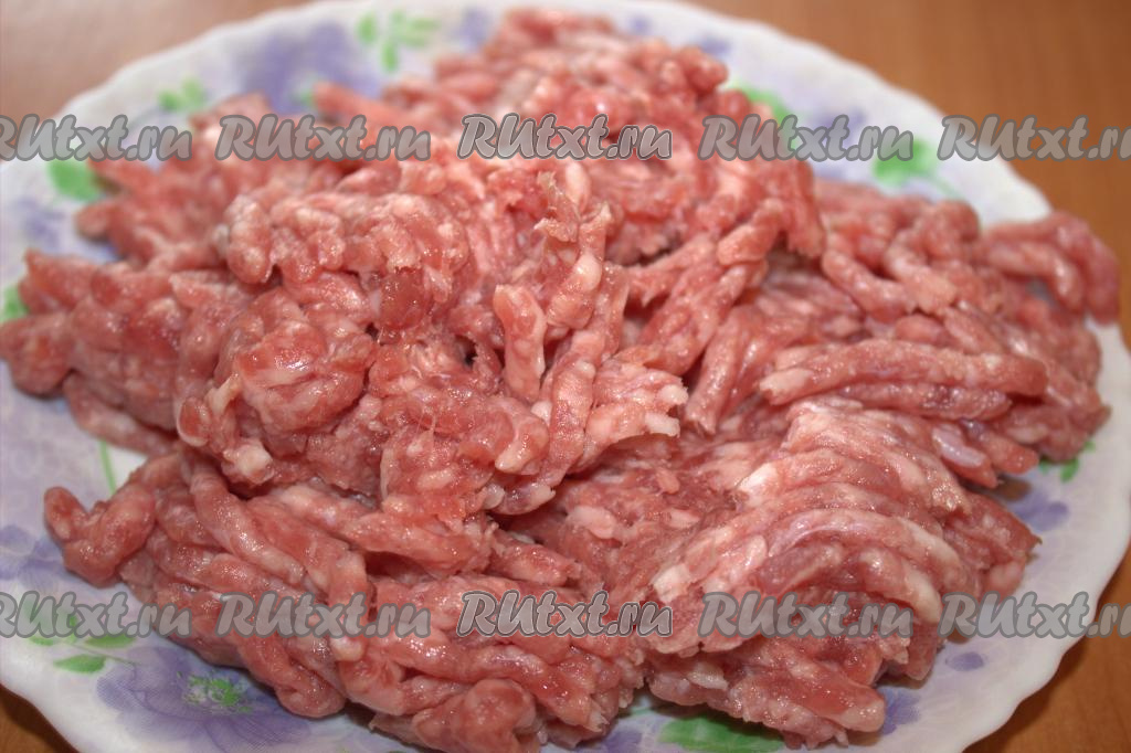 Мякоть свинины (или другое мясо) хорошо вымыть, нарезать на кусочки и пропустить через мясорубку. Можно использовать покупной фарш.
