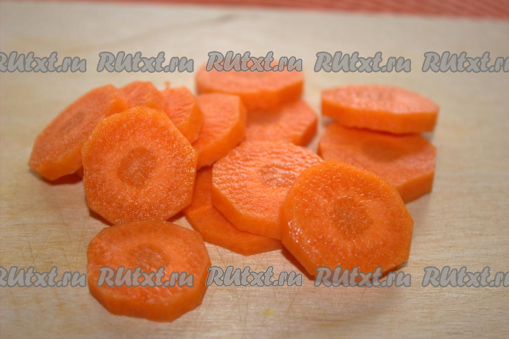 Лук очистить, нарезать произвольно (я нарезала четверть кольцами). Морковь очистить и нарезать кольцами.