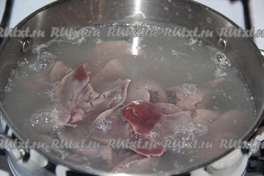Опустить печень в кипящую воду и варить, с момента закипания, 3 минуты.