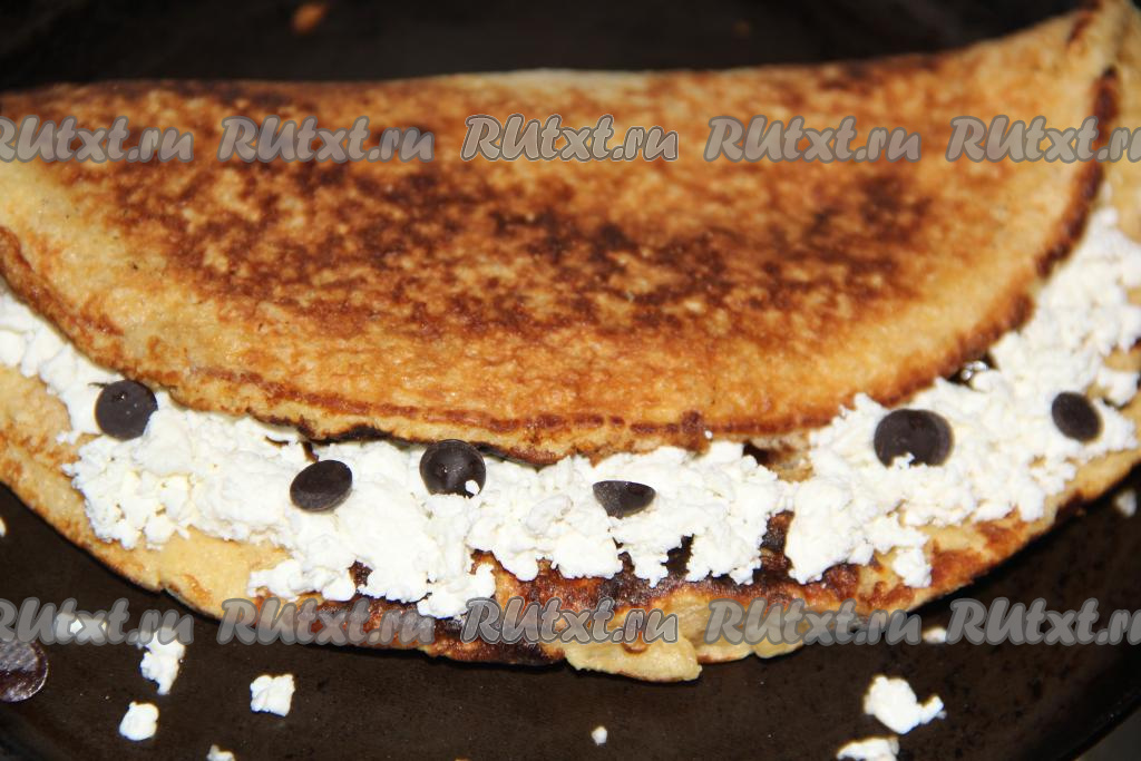 Накрыть творожную начинку пустой половиной овсяноблина, сформировав полукруг.
