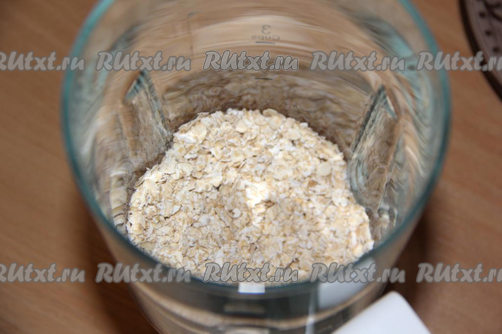 Овсяные хлопья любого помола всыпать в чашу и измельчить погружным блендером в муку.