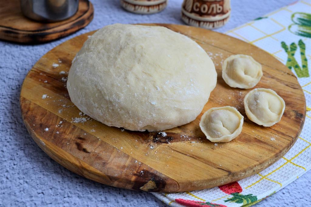 Вот и всё! Замечательное заварное тесто для пельменей с добавлением одного яйца готово. Оно отлично раскатывается до тонкого состояния и не рвётся, можно лепить пельмени!