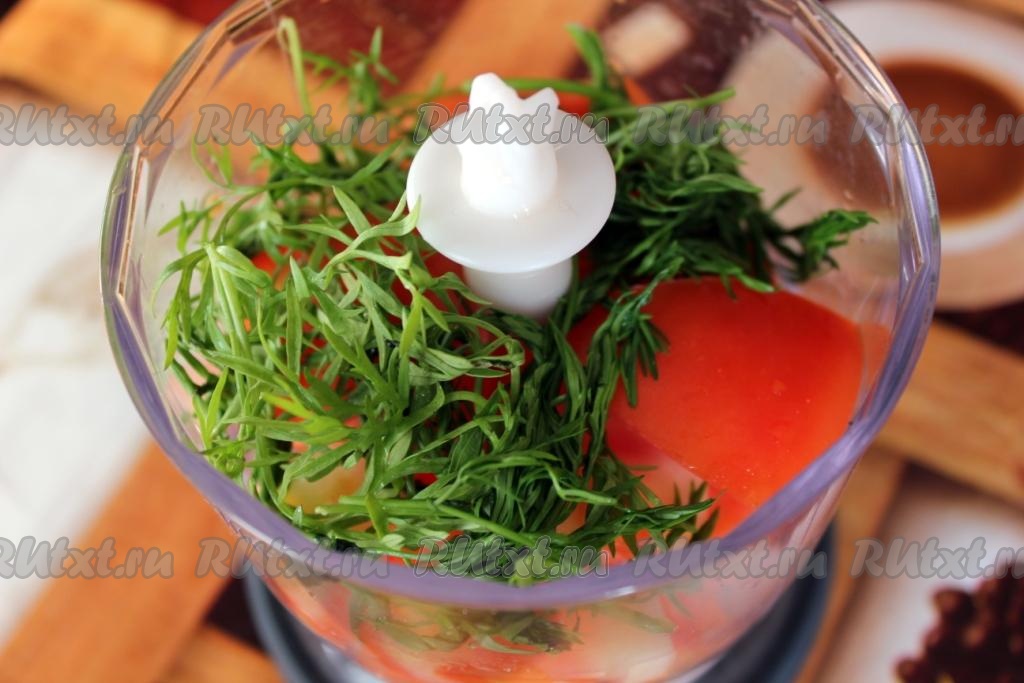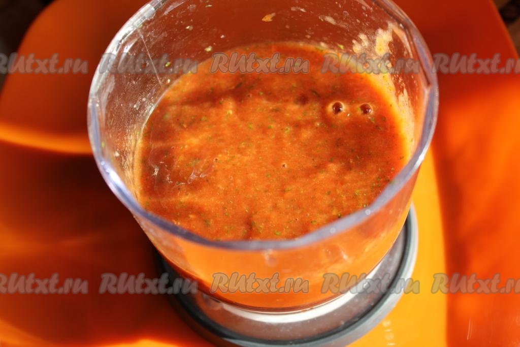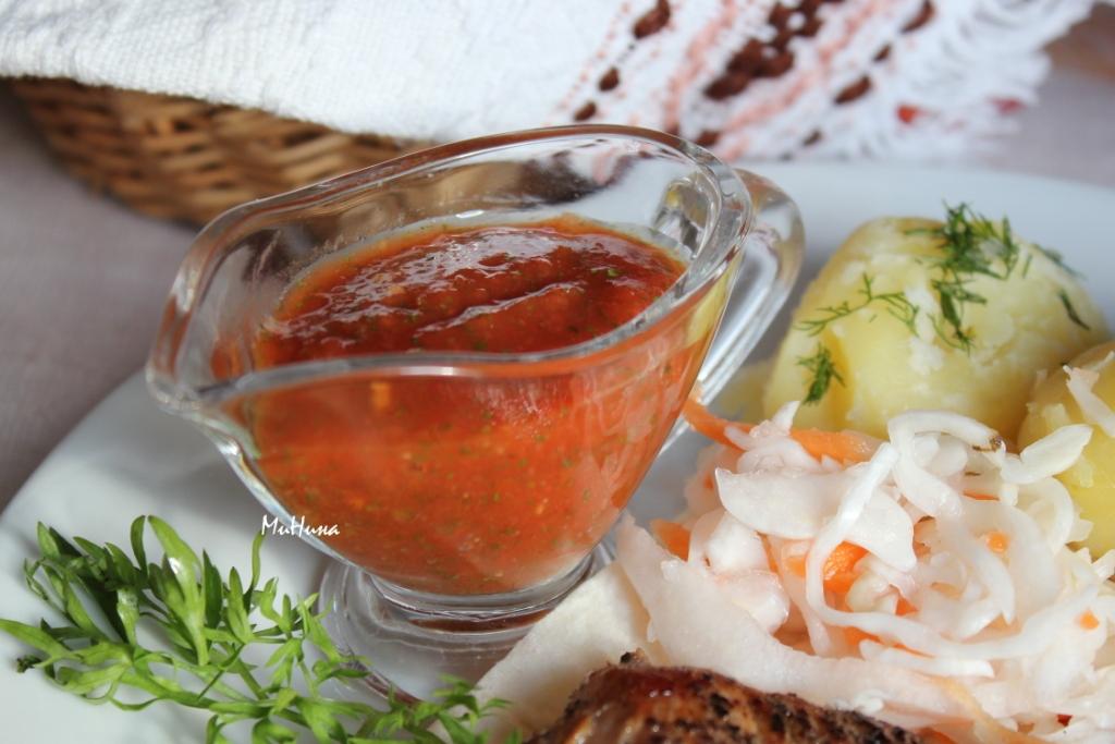 Соус из помидоров с кинзой и черемшой готов.