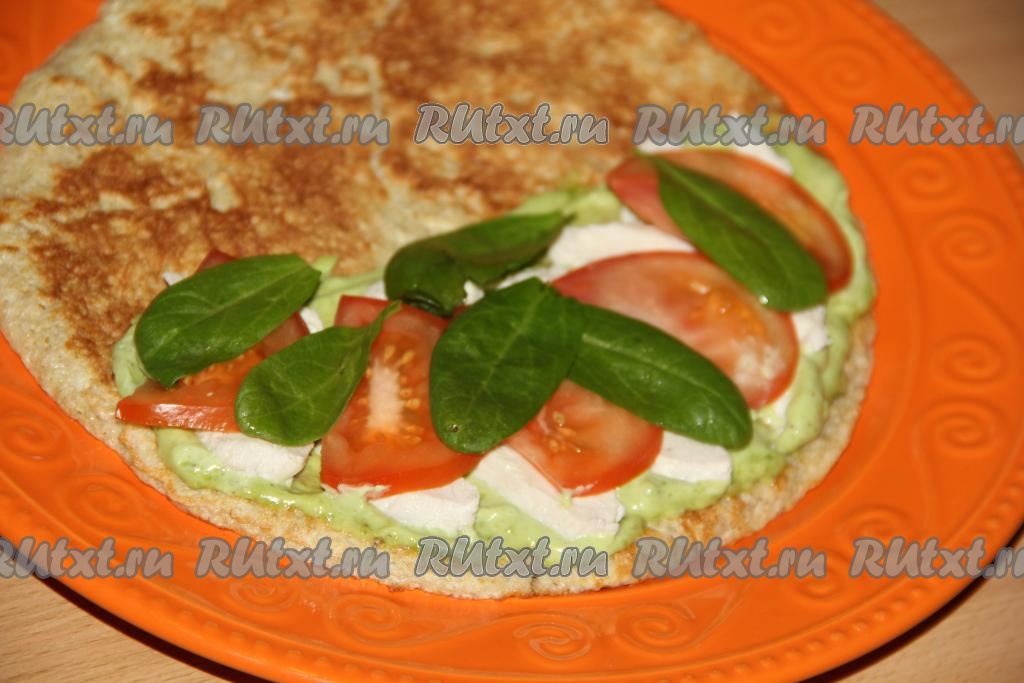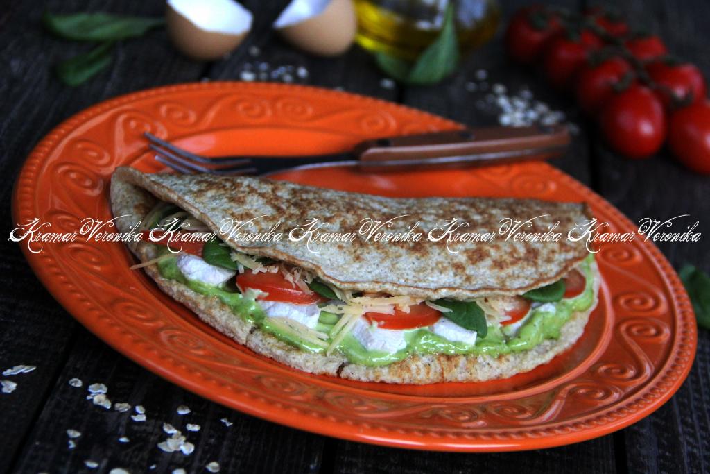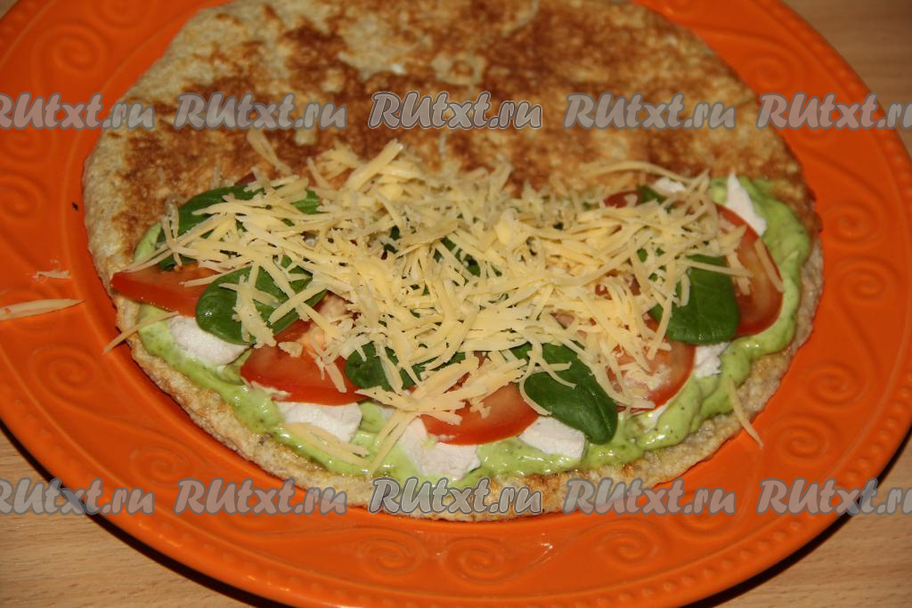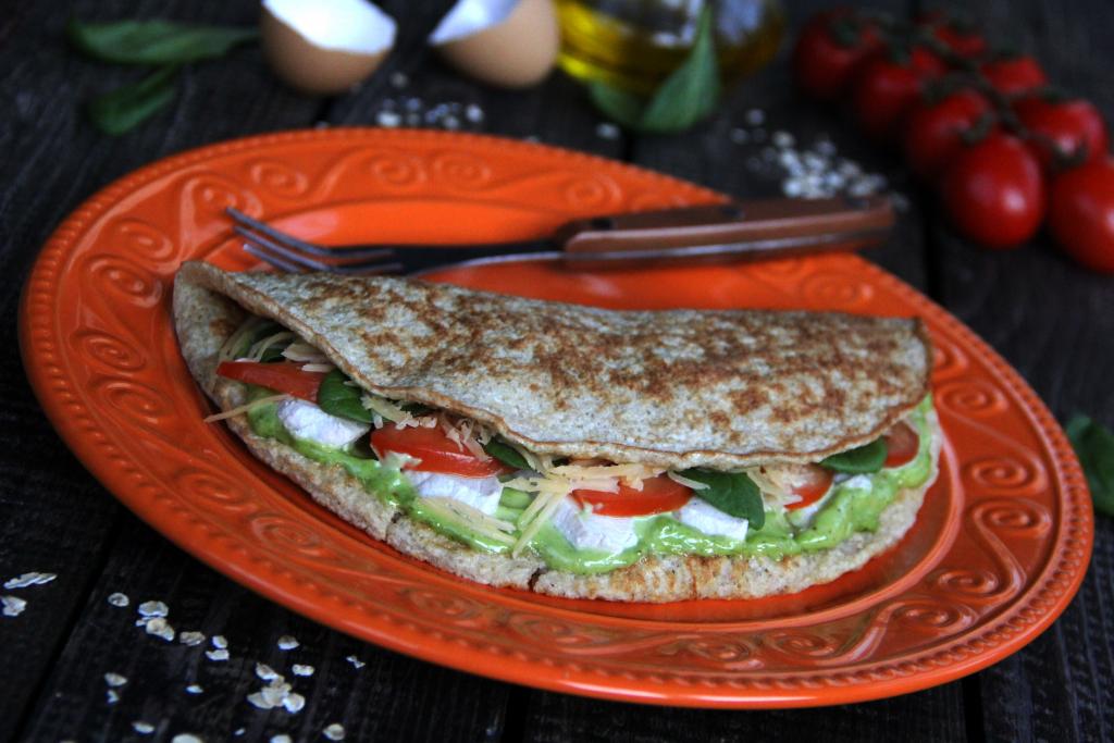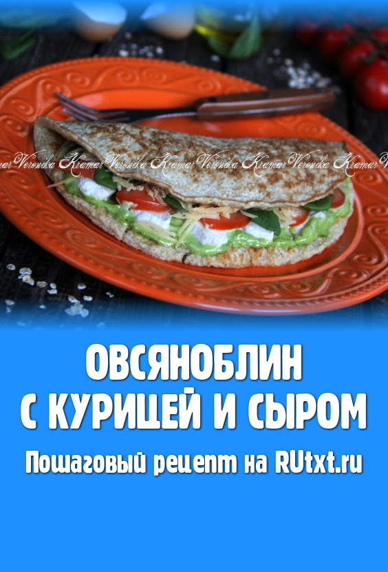 Накрыть начинку второй половинкой овсяноблина. Можно дополнительно прогреть блин в микроволновке или на сковороде, чтобы сыр расплавился. Подать овсяноблин с начинкой из курицы и сыра к столу. Получается очень вкусно и сытно!
