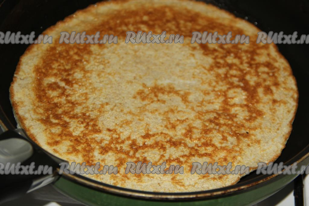 Когда блин "схватится" и подрумянится с одной стороны, перевернуть его и жарить с другой стороны до золотистого цвета.
