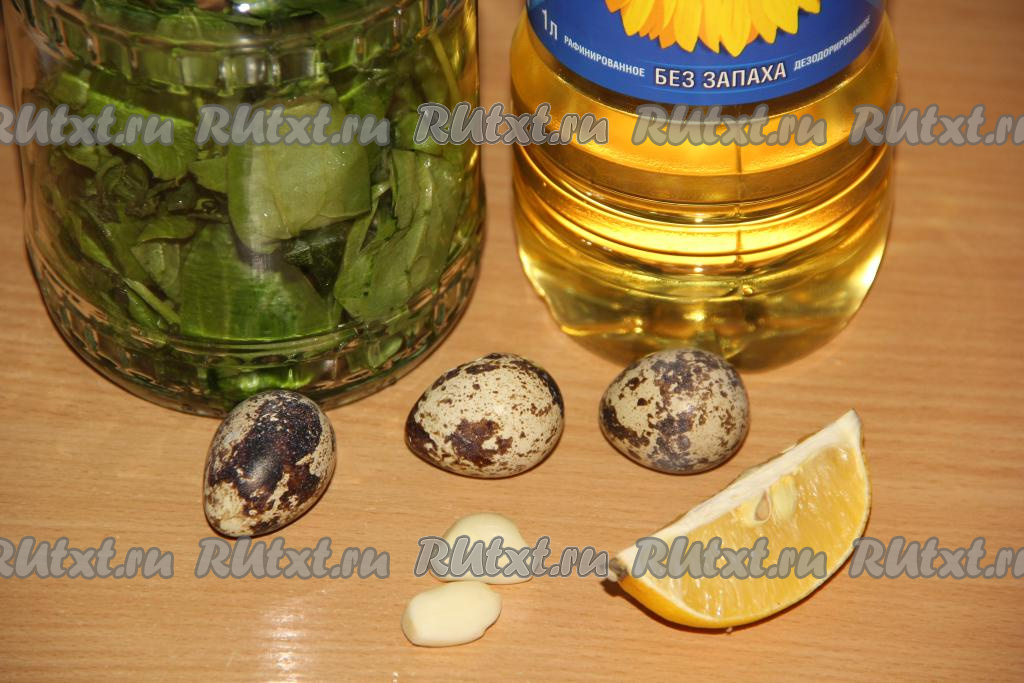 Всыпать в банку соль, вбить перепелиные яйца, выдавить сок лимона. Можно вместо перепелиных яиц использовать для шпинатного соуса одно куриное яйцо (С0 или С1). Куриное яйцо перед тем как разбить в банку, нужно тщательно вымыть.