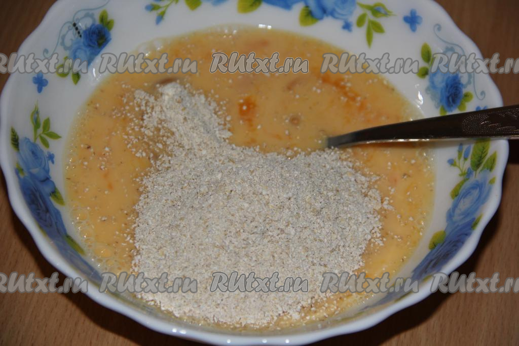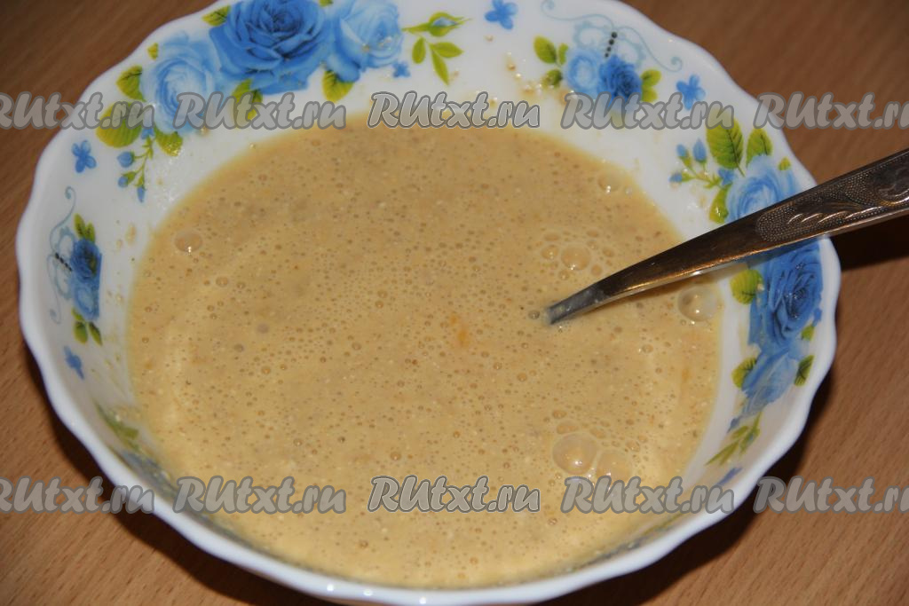 Вилкой (или венчиком) перемешать яично-овсяное тесто, оно получится жидким
