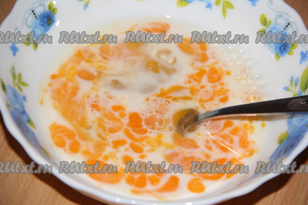 Яйца взбить с молоком при помощи вилки (или венчика).