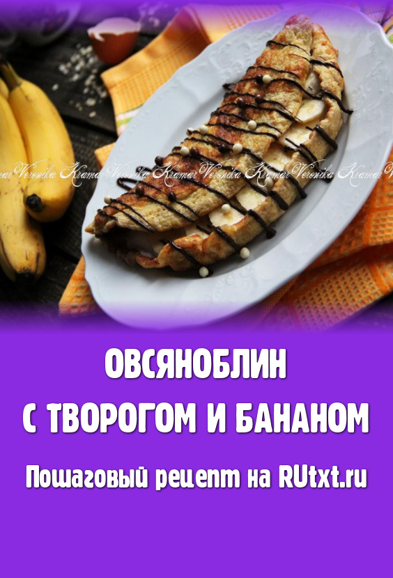 Овсяноблин - это очень вкусный и пышный блин, приготовленный из измельчённых хлопьев, молока и яиц на сковороде. Этот блинчик можно сделать с разными начинками, например, с курицей, фруктами и т.д. В этот раз я решила сделать овсяноблин с начинкой из сладкого творога и банана. Блюдо получилось очень вкусным и сытным. Я использовала для начинки мягкий творожок типа "Агуши" (можно заменить на творог, смешанный с сахаром). Аппетитный блинчик, приготовленный по этому простому рецепту, станет прекрасным завтраком или ужином для детей и взрослых. Расчёт продуктов дан для приготовления 1 овсяноблина.