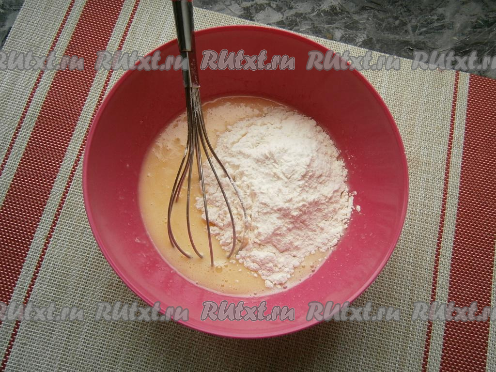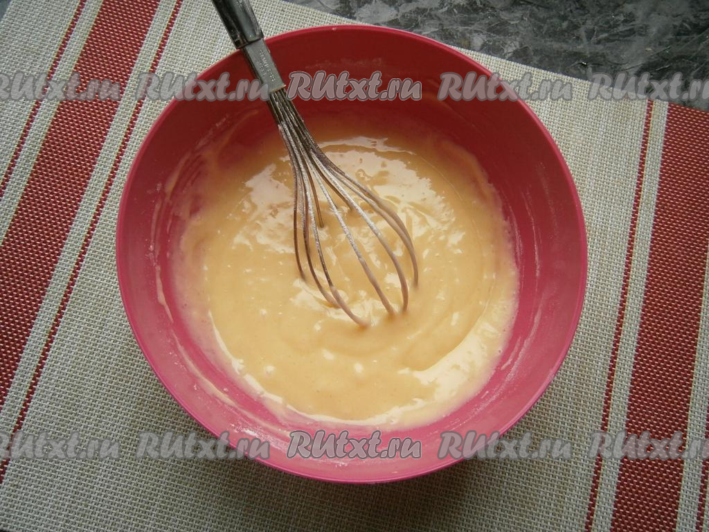 Замесить венчиком нежное, гладкое, в меру густое тесто, похожее на тесто для оладий.