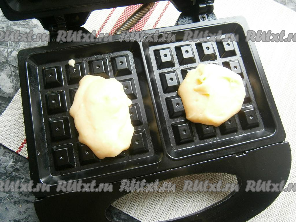 Разогреть электровафельницу, в каждую ячейку выкладывать по 1,5 столовых ложки теста.