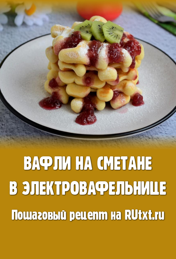 Вафли, приготовленные на сметане в электровафельнице, - шикарная выпечка, которую можно предложить своим родным к чаю на завтрак или в качестве десерта на ужин. Вафли получаются очень вкусными, хрустящими снаружи и нежными, рассыпчатыми внутри. Готовятся вафельки совершенно просто и быстро, подойдёт любая электровафельница. Подавать вафли можно с джемом, вареньем, сиропом, ягодами и фруктами или же посыпав сахарной пудрой. Из предложенного количества продуктов получится 10 вафель.