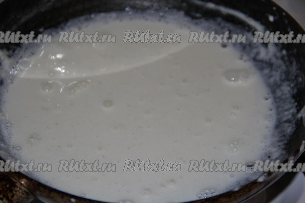 Потомить сливочную массу, помешивая, на медленном огне до тех пор, пока она не станет однородной и без комочков (буквально несколько минут).