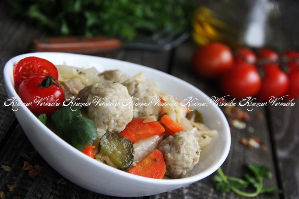 Мультиварка - помощница на кухне, в ней можно приготовить немало полезных и вкусных блюд. Сегодня предлагаю потушить капусту с фрикадельками в мультиварке. Блюдо получается очень сытным, готовится без лишнего жира, а маринованные огурчики придают особую пикантность. Мясной фарш можно использовать покупной, а можно взять домашний фарш, пропустив мясо через мясорубку. Это простое блюдо и насытит, и порадует приятным вкусом, попробуйте!