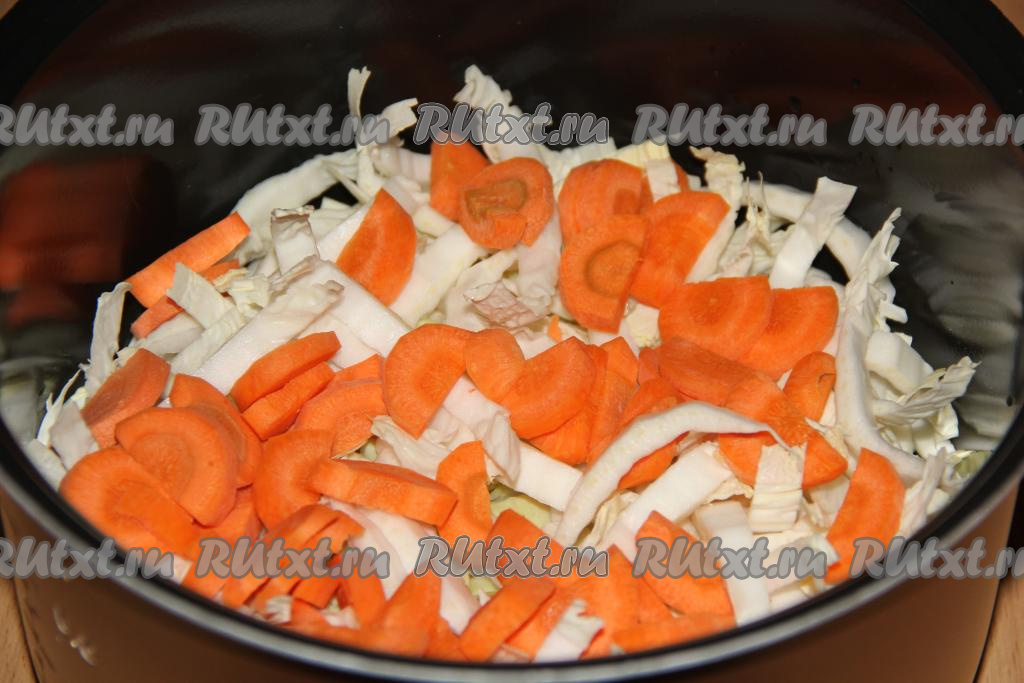Морковь очистить, нарезать на кружочки (или полукружочки) и добавить в чашу мультиварки.