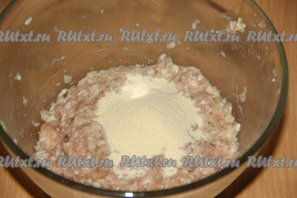Добавить в фарш манку и соль по вкусу.
