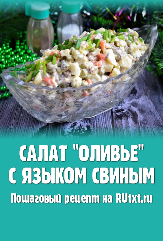 Салат "Оливье" в наше время готовят и с колбасой, и с мясом, и с рыбой, и с креветками. Я же хочу предложить вам рецепт "Оливье" со свиным языком. Так салат готовила моя мама и он чаще всего украшал все праздничные столы в нашей семье. Вместо свиного языка можно использовать говяжий. Салатик получается очень вкусным, попробуйте, тем более, что язык в наше время купить не составит особого труда.