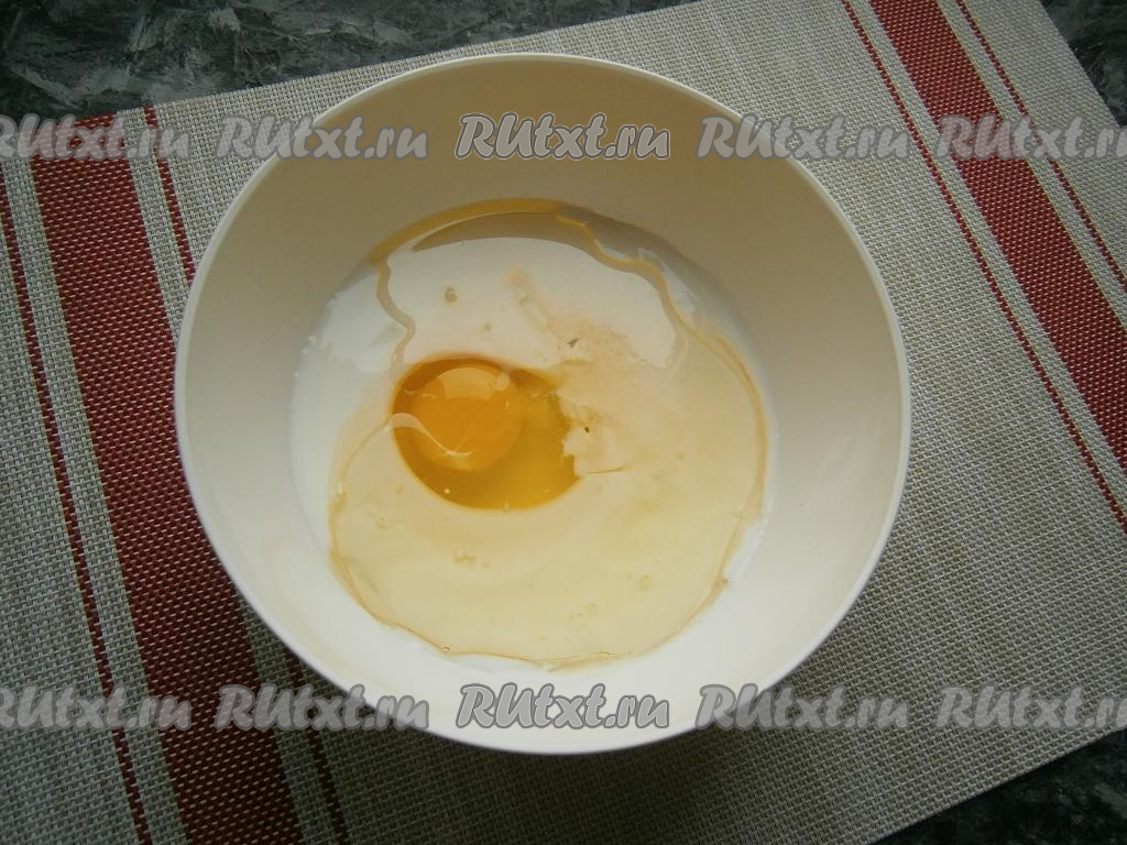 В кефир комнатной температуры добавить сырое яйцо.