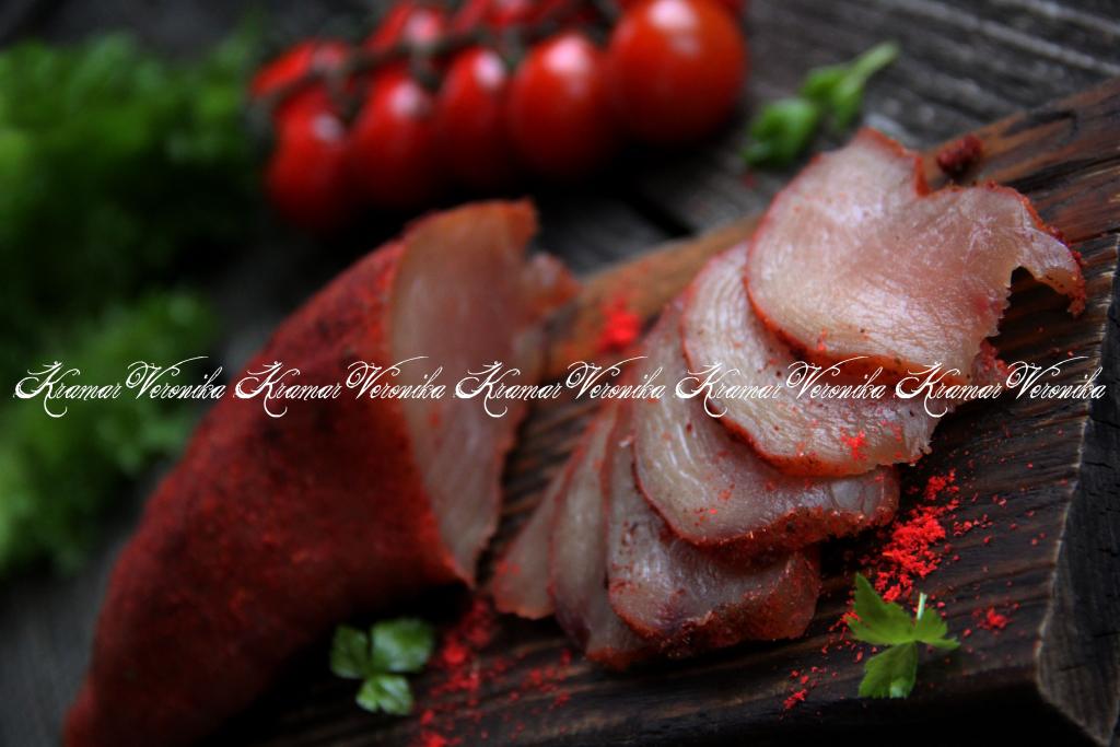 Подвесить мясо на 7-8 дней в прохладном месте (можно подвесить на балконе, чердаке или поместить в холодильник). По прошествии времени развернуть бастурму из куриного филе (я разворачиваю только ту часть мяса, которую буду нарезать, оставшуюся бастурму вновь заворачиваю в марлю и отправляю в холодильник).