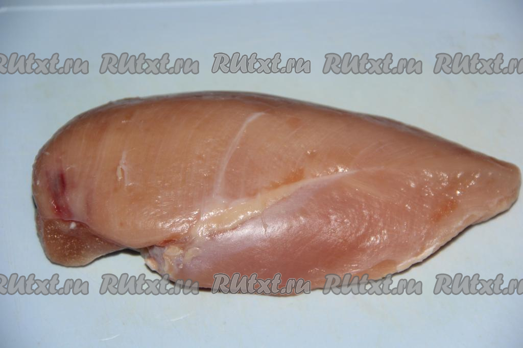 Куриное филе промыть под водой и обсушить. Лучше взять большое по размеру филе.