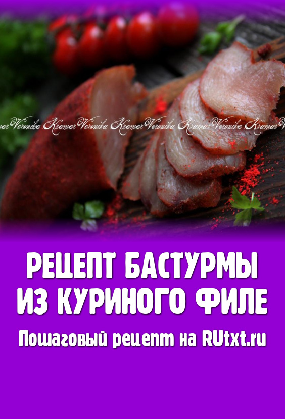 Бастурма - это вяленое мясо, приготовленное с добавлением специй. Готовят бастурму из различных видов мяса. Я предлагаю рецепт бастурмы из куриного филе. Вялить мясо лучше в прохладном месте. Мы вялили на чердаке дома, можно вялить на балконе и даже в холодильнике. Бастурма из куриного филе получается очень вкусной, нежной и пряной. Всем советую приготовить замечательное вяленое мясо по этому рецепту!