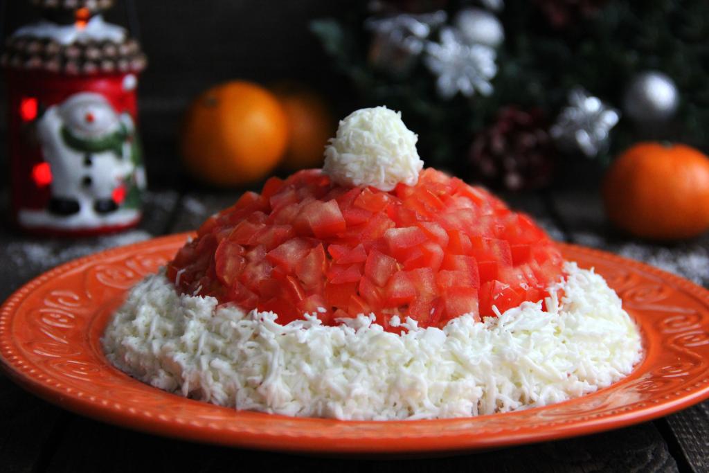 К новогоднему столу предлагаю приготовить яркий, сытный и вкусный салат в виде шапки Деда Мороза. В этом тематическом салатике отлично сочетаются ингредиенты. Такой салат несомненно станет украшением праздничного стола. Рецепт настолько прост, что этот вкусный салат сможет приготовить даже начинающая хозяйка!