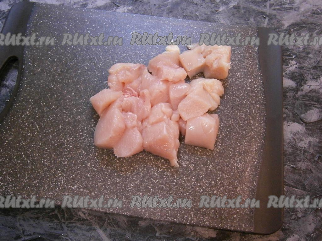 Нарезать филе небольшими кусочками.