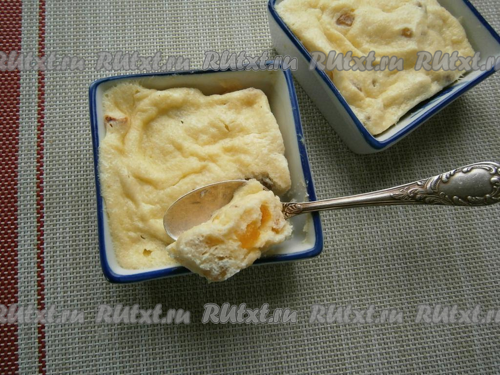Нежный, очень вкусный и ароматный творожный пудинг, приготовленный в микроволновке, лучше подавать в тёплом виде.