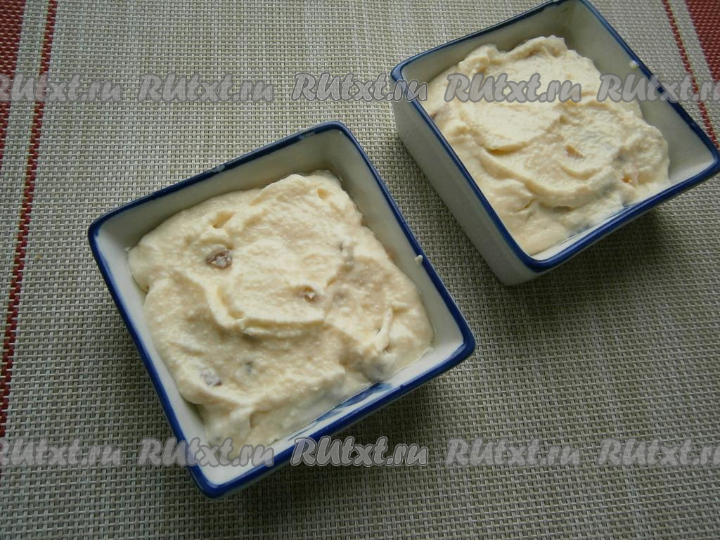 Небольшие формочки (керамические, стеклянные или силиконовые) смазать сливочным маслом и разложить в них творожную массу.