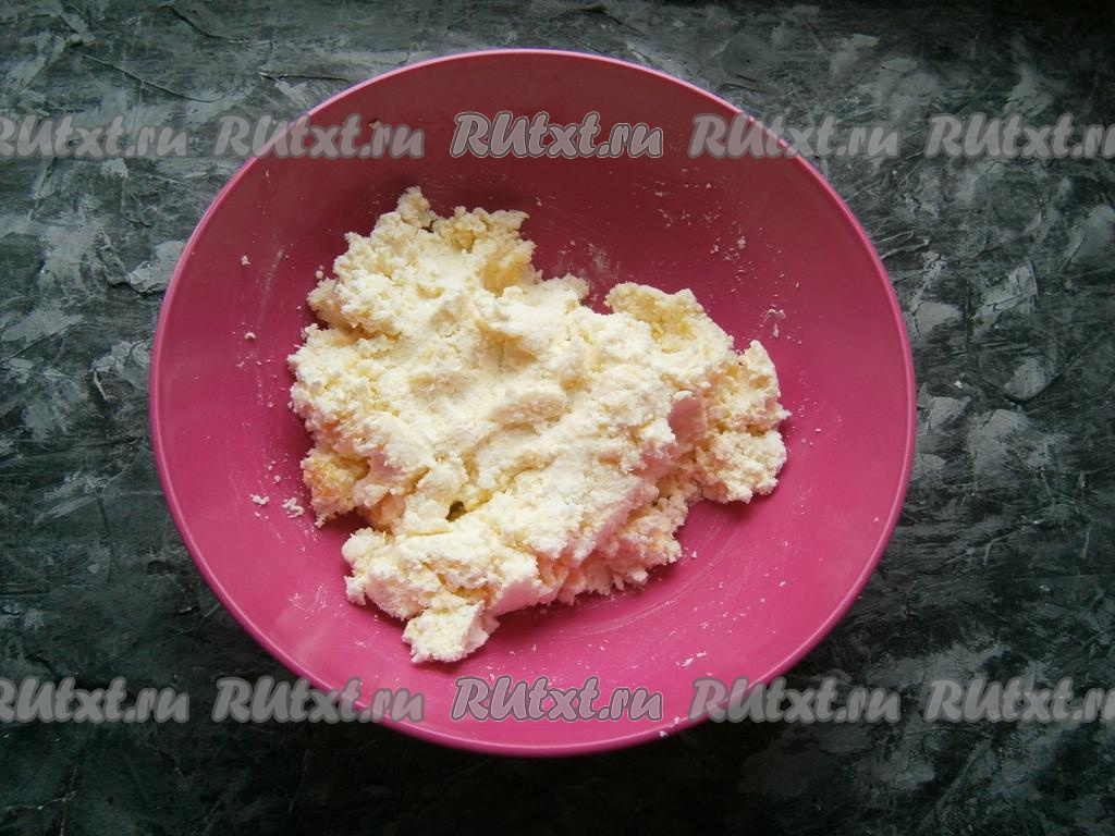 Тщательно вымесить руками, должна получиться достаточно плотная творожная масса.