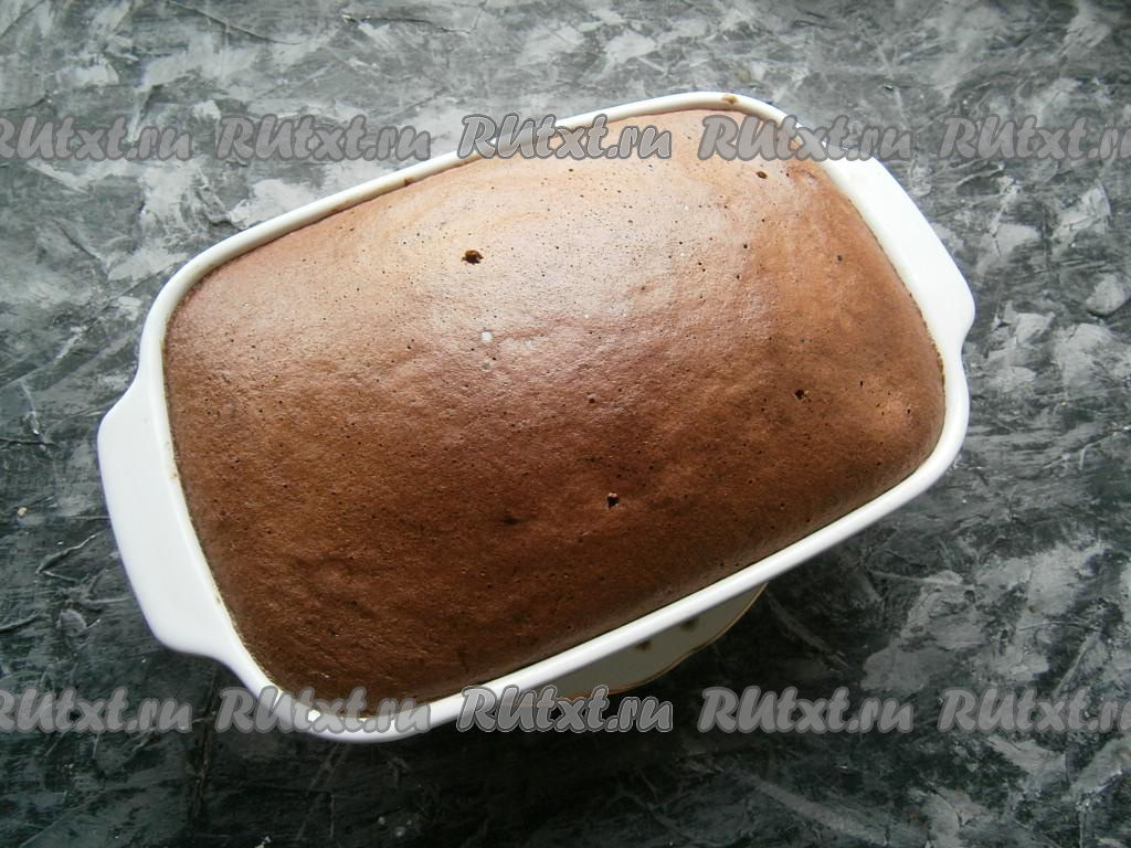 Духовку разогреть до 180 градусов и выпекать в ней шоколадный пирог около 40-45 минут (готовность проверить деревянной лучинкой - лучинка останется сухой при прокалывании готового пирога). Дать пирогу остыть в форме.