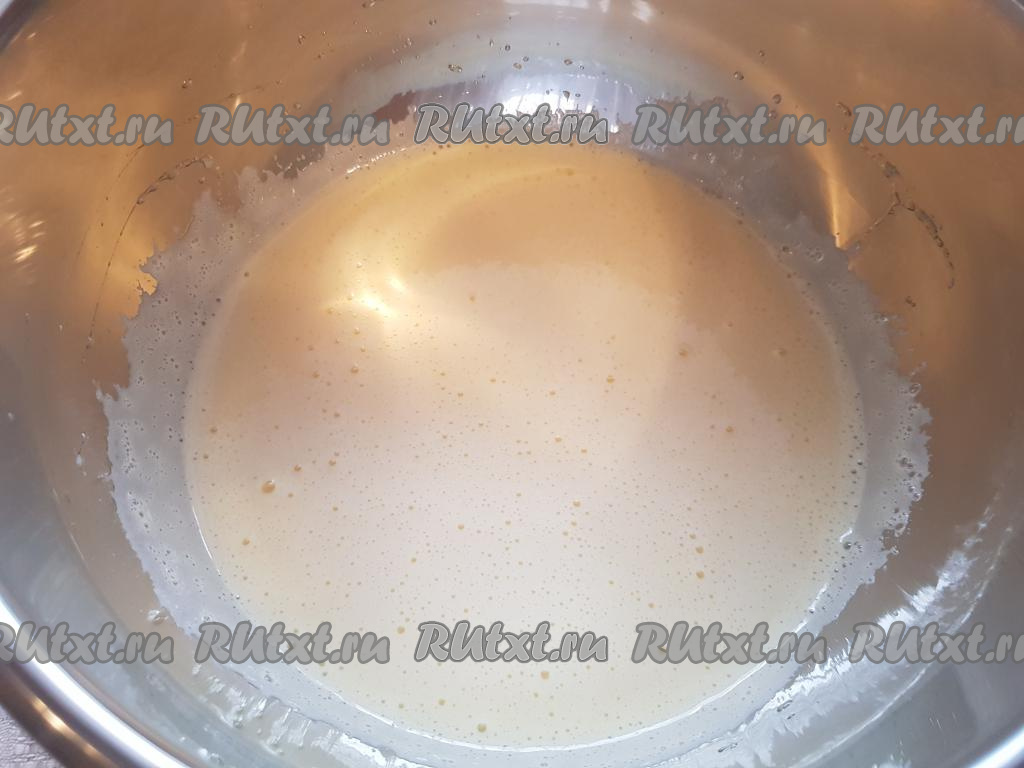 Взбить миксером яйца с сахаром (взбивать в течение 5-6 минут).