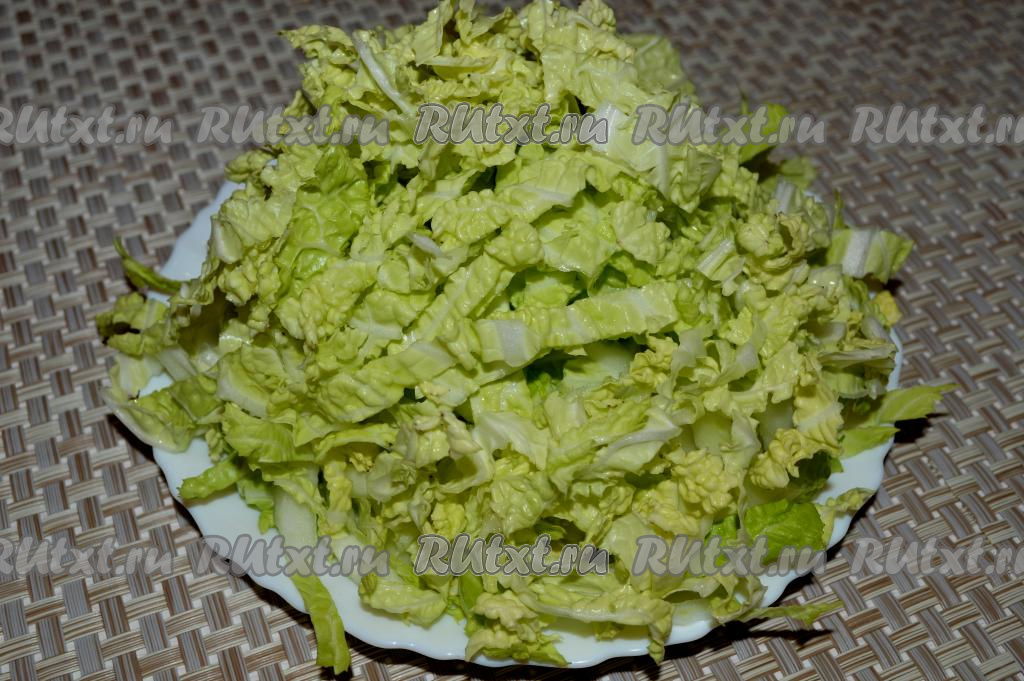 Пекинскую капусту и укроп вымойте и обсушите. Капусту нашинкуйте.