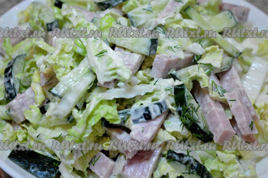 Предлагаю приготовить салат из пекинской капусты с добавлением ветчины и огурцов. Про этот рецепт можно сказать так: вкусно, сытно, быстро. Готовится салат за считанные минуты, ведь ни один из ингредиентов не нужно отваривать, обжаривать или запекать. Если нет ветчины, её можно заменить на варёную или полукопчёную колбасу. Салатик получается очень сочным, аппетитным и ярким. Его можно приготовить и к ужину, и когда неожиданно нагрянули гости. Этот незатейливый салатик несомненно понравится многим!