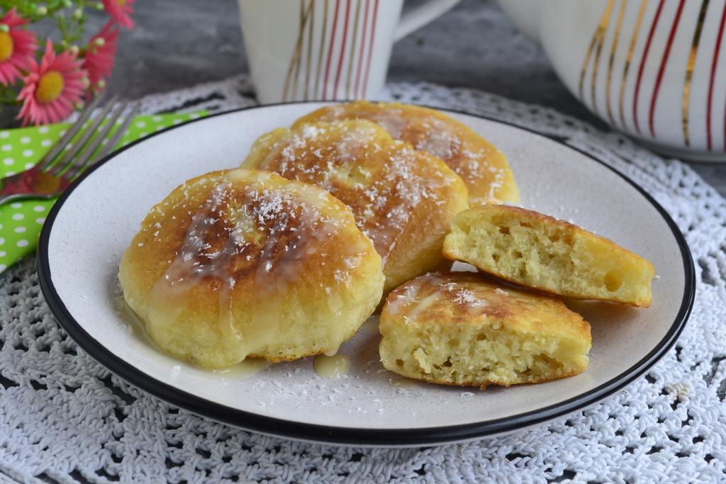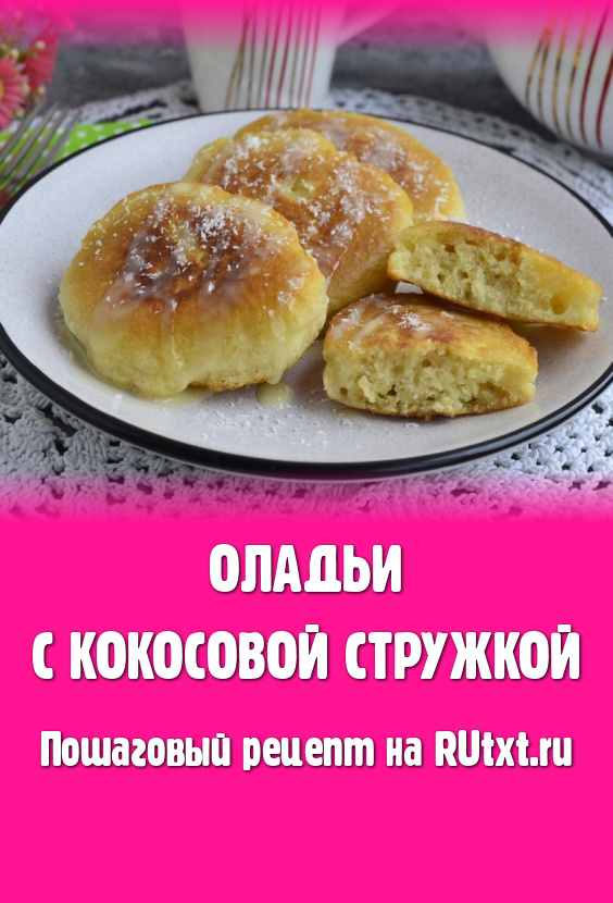 Вкуснейшие, пышные и ароматнейшие оладьи, приготовленные с добавлением кокосовой стружки, подавать к столу тёплыми с вареньем, джемом, мёдом или сгущённым молоком.
