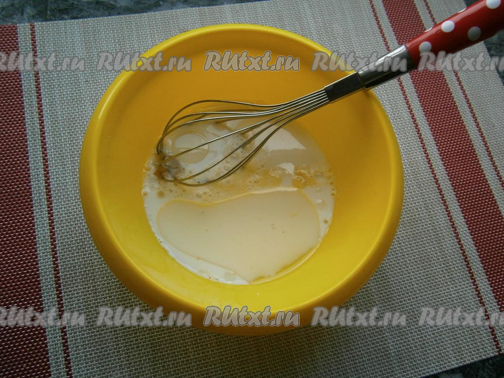 Тщательно расколотить венчиком, влить молоко и 1 столовую ложку растительного масла.