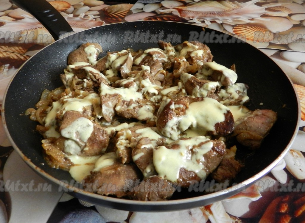 Когда сок, выделяющийся из печени, станет прозрачным, печень готова.