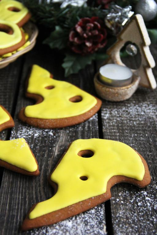 В этом году нашла очень удачный рецепт теста для приготовления имбирных пряников с корицей и мёдом. Форму пряничкам можно придать любую (например, в виде животных, ёлочек, домиков, снежинок и т.д.), используя различные трафареты или формы для вырубки, которые можно приобрести в магазине или заказать в Интернете. Украсить эту выпечку можно по-разному. В этом году к новогодним праздникам я сделала пряники в виде ломтиков сыра и покрыла их жёлтой глазурью, они получились яркими, вкусными и ароматными. Вырезала пряники по бумажному трафарету, дырочки в тесте делала ножом. Такая домашняя выпечка украсит любой праздничный стол, всем советую этот отличный рецепт!