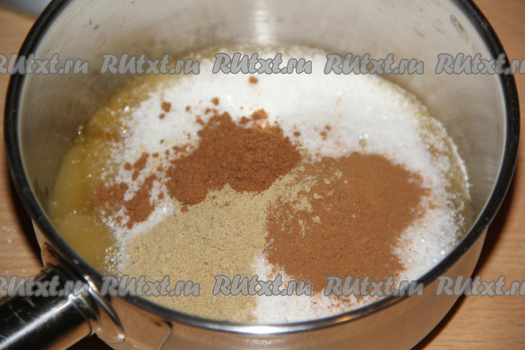 Добавить молотый имбирь, мускатный орех и корицу.