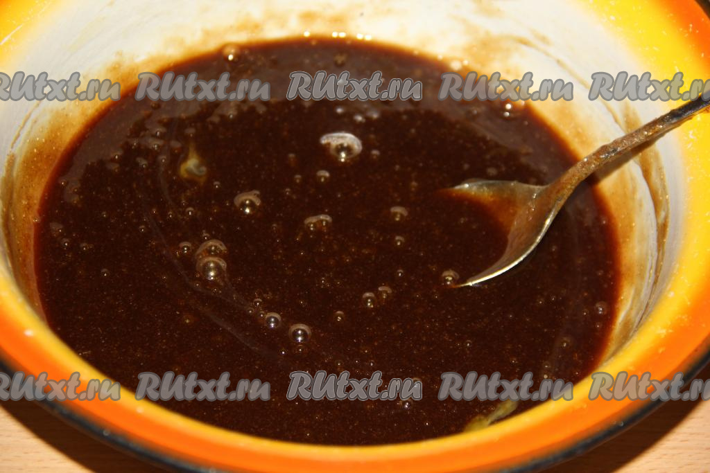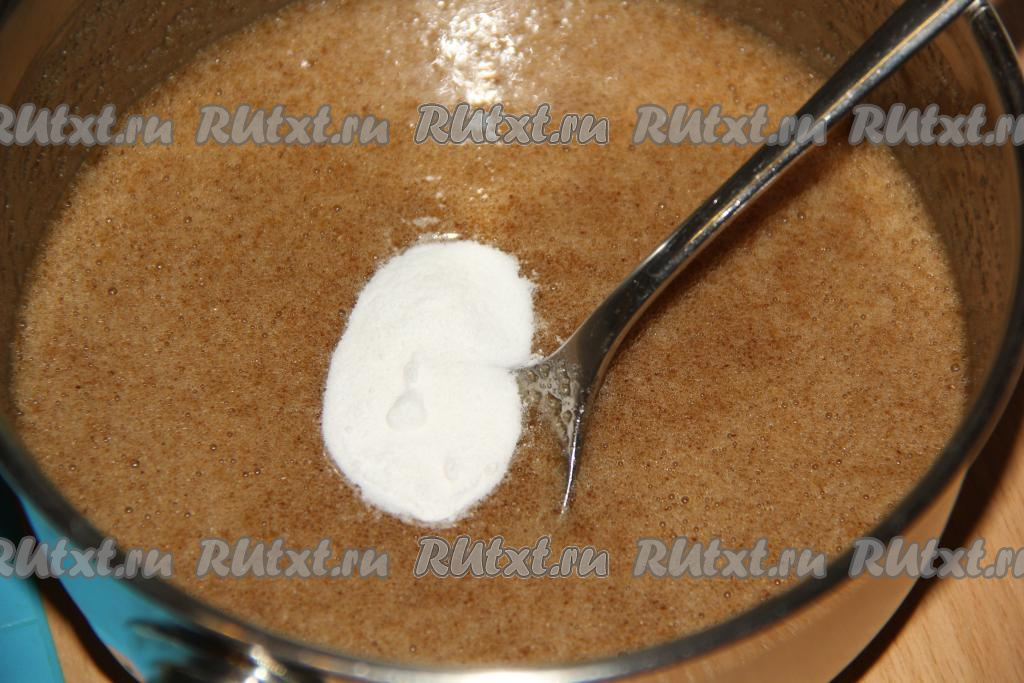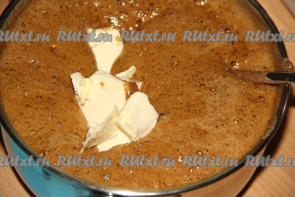 Тщательно перемешать массу, чтобы вся сода растворилась. Затем добавить мягкое масло.