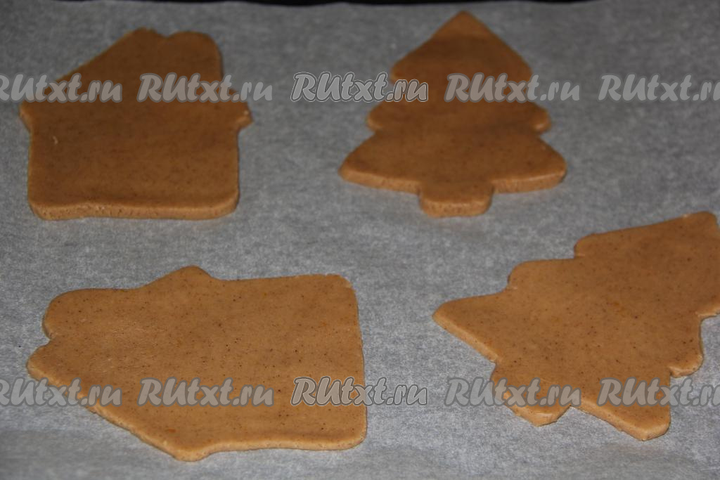 Вырезанные заготовки пряников выложить на противень, застеленный бумагой для выпечки. Аналогично подготовить из теста все пряники.