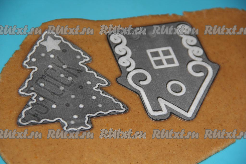 По прошествии времени достать тесто из холодильника, разделить на несколько частей. Пока будем работать с одной частью теста, оставшееся тесто должно лежать в холодильнике. Скалкой нужно раскатать одну часть теста в пласт толщиной 5-7 мм. Вырезать пряники по трафарету (или с помощью вырубки).