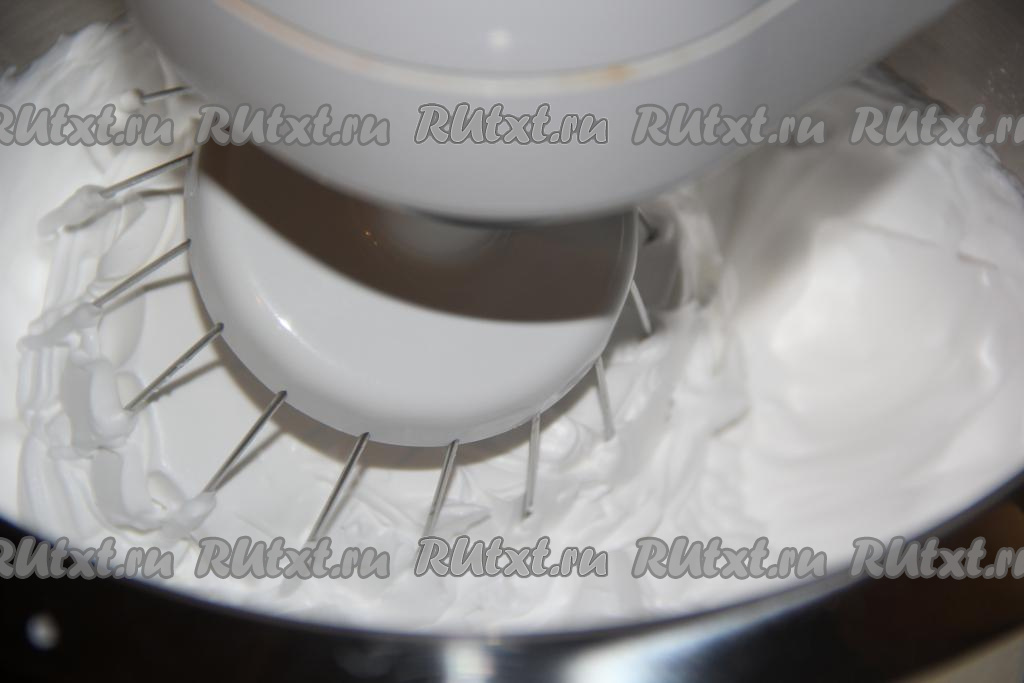 Сливки влить в чашу миксера и взбивать до стойких пиков.