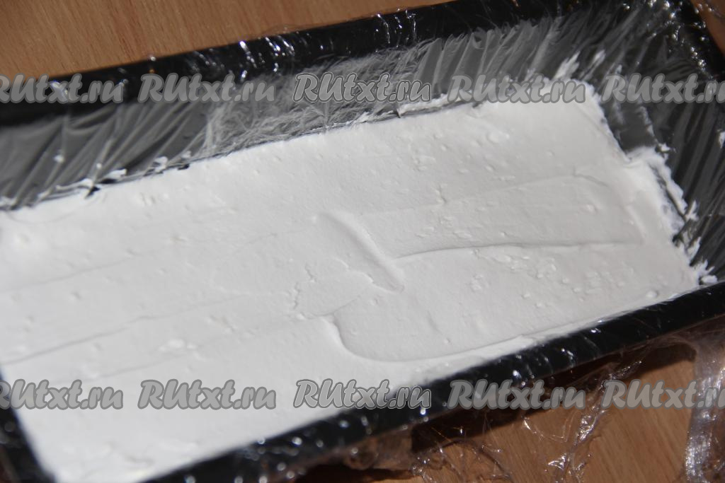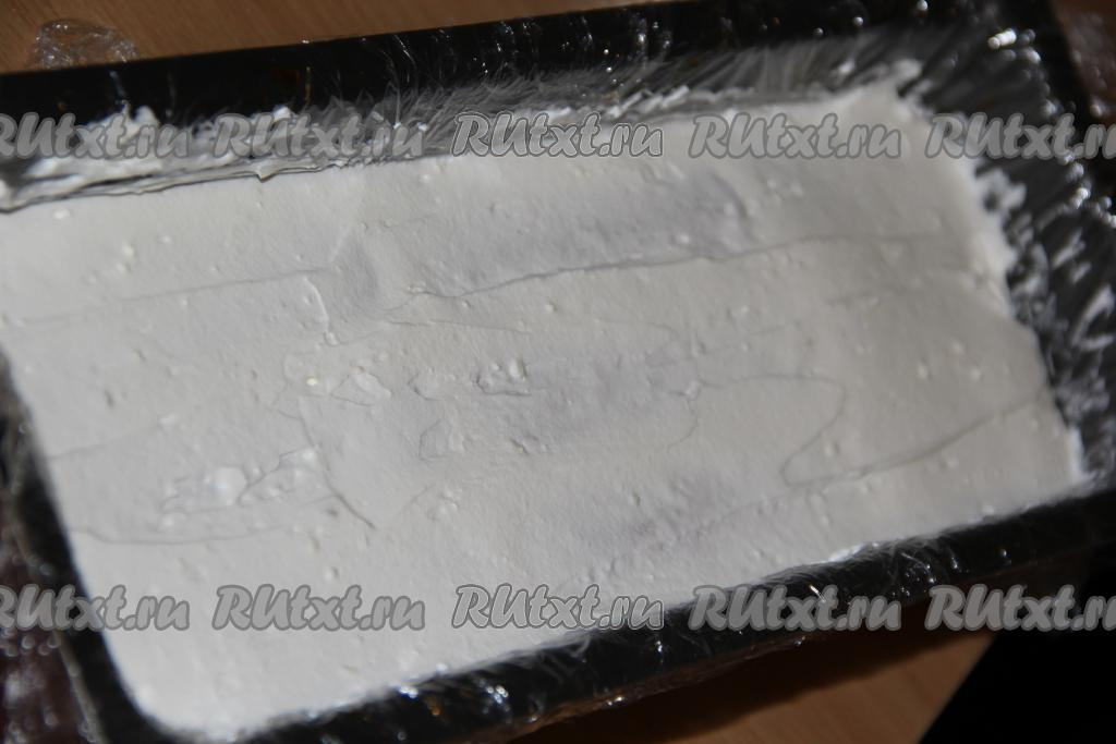 Покрыть печенье кремом и разровнять. Остатки крема оставить в холодильнике. Поставить форму с тирамису в холодильник на ночь.