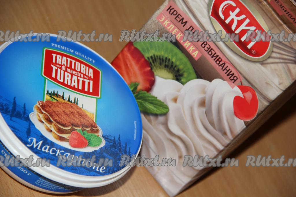 Для приготовления тирамису я использовала маскарпоне и сливки на растительных маслах. И маскарпоне, и сливки должны быть хорошо охлаждёнными.