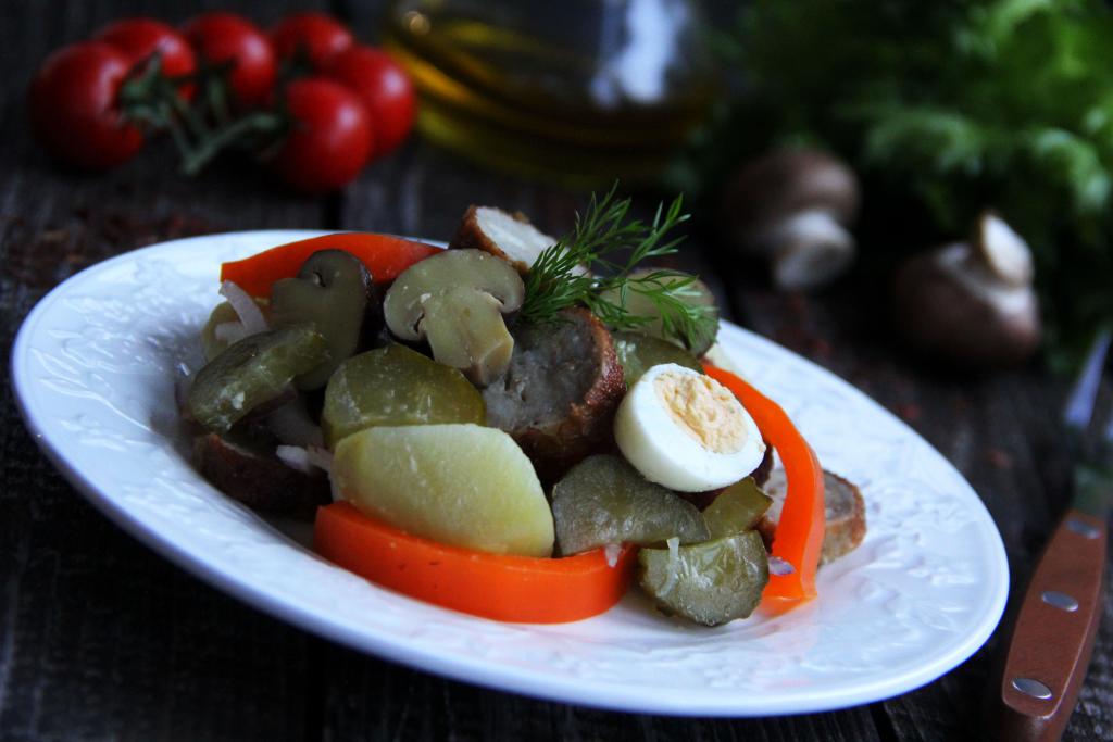 Хочу поделиться рецептом салата с баварскими колбасками. Это блюдо можно приготовить для семейного ужина и даже для праздничного стола. Я попробовала этот салат на корпоративе и мне он очень понравился. Такой салатик можно заправить хоть майонезом, хоть растительным маслом, и даже уксусом или соевым соусом. Салат с баварскими колбасками получается очень вкусным и сытным, всем советую!