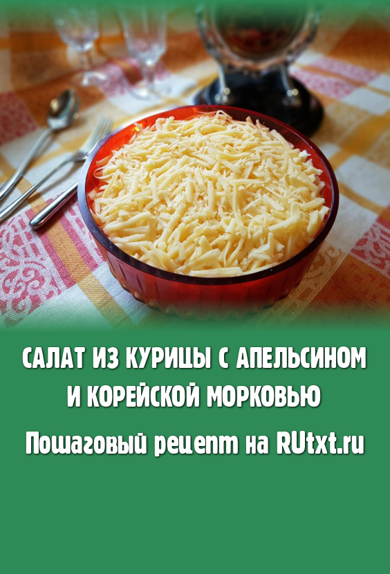 Сытный, аппетитный, вкусный салат из курицы, приготовленный с корейской морковью и апельсином, можно сразу же подавать к столу. Это блюдо с необычным сочетанием ингредиентов, наверняка, понравится многим!