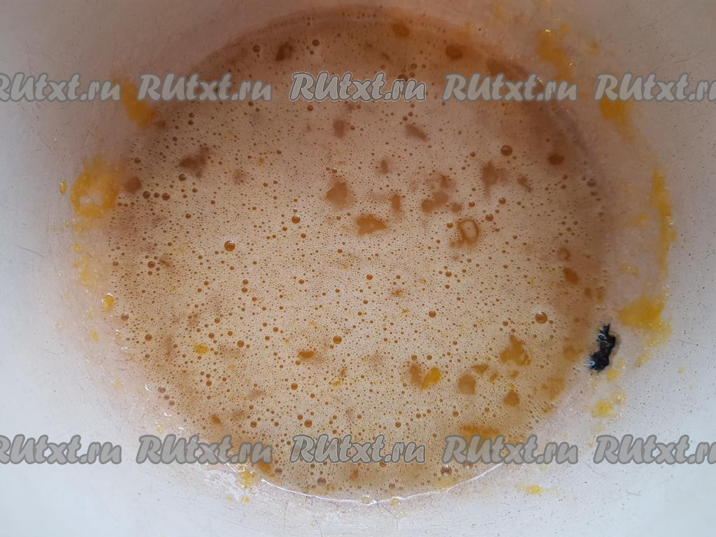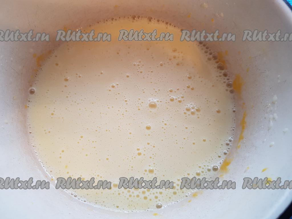 В полученную массу добавить кефир и соду, затем взбить миксером в течение 1-2 минут (до однородности).